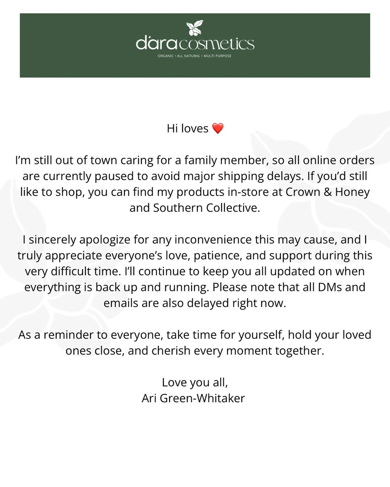 Inspired by her sensitive skin and urge to problem solve, Ari Whitaker melds highly effective, ethically sourced formulas with a luxurious feel to help you embrace your natural beauty. What started as trial and error in her college apartment, became a thoughtful and meticulous process of hand making each and every D’ara Cosmetics product.